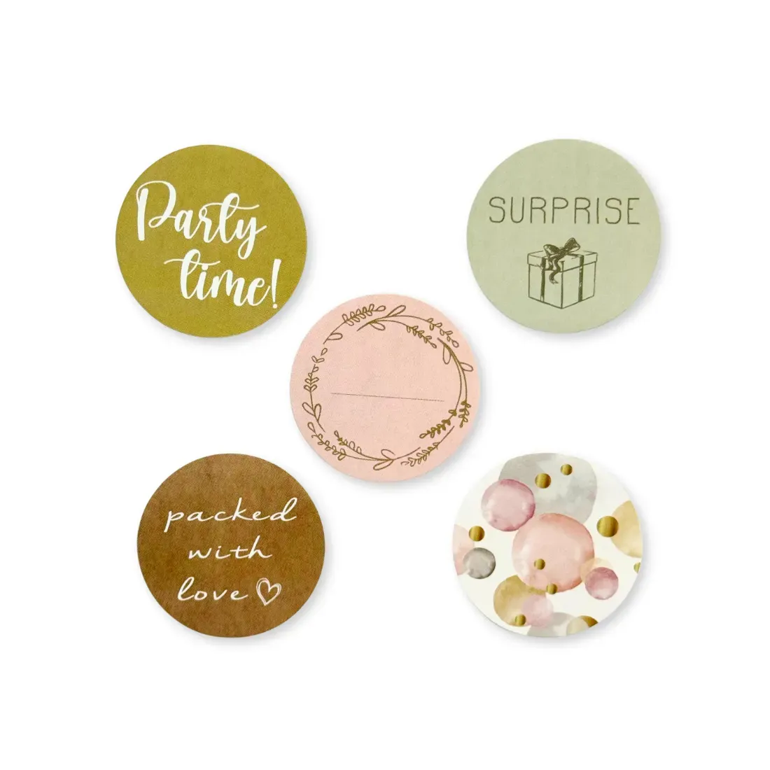 Etichette adesive in confezione da 500 pz. suddivisa in 5 frizzanti fantasie.
