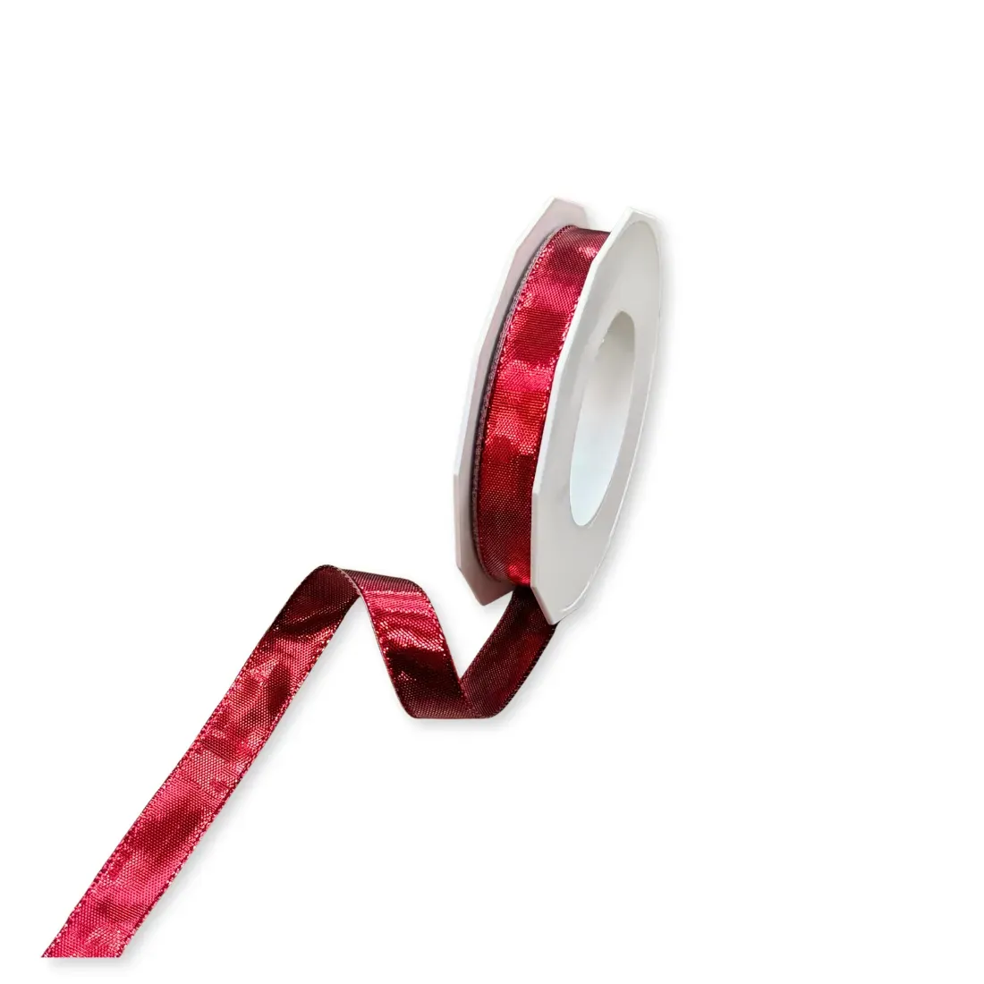 Nastro tessuto Devon, laminato rosso dal look metallico e coprente per un effetto wow, facilmente modellabile grazie al suo bordo animato.