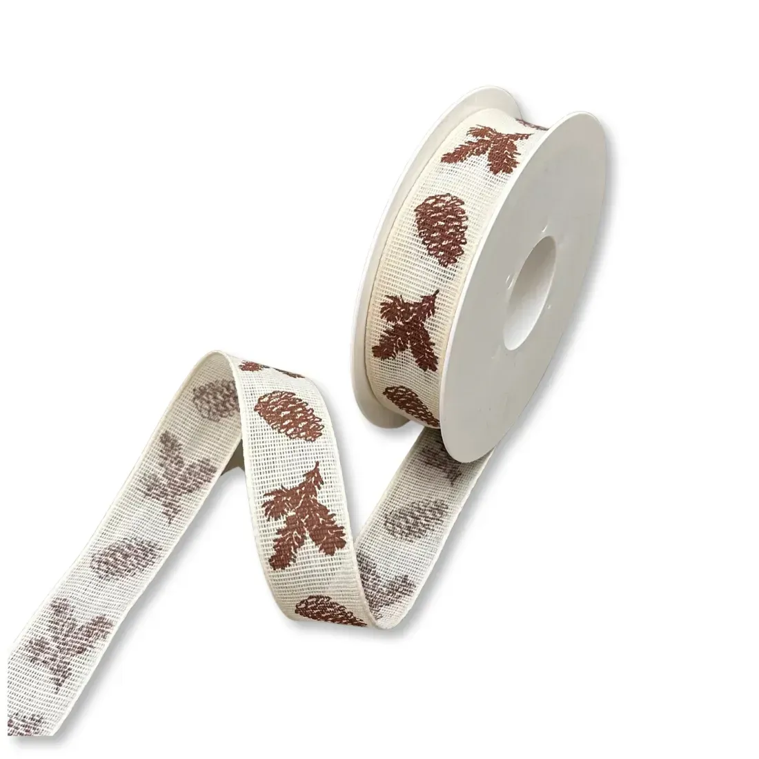 Nastro tessuto fantasia con pigne e rami di abete.