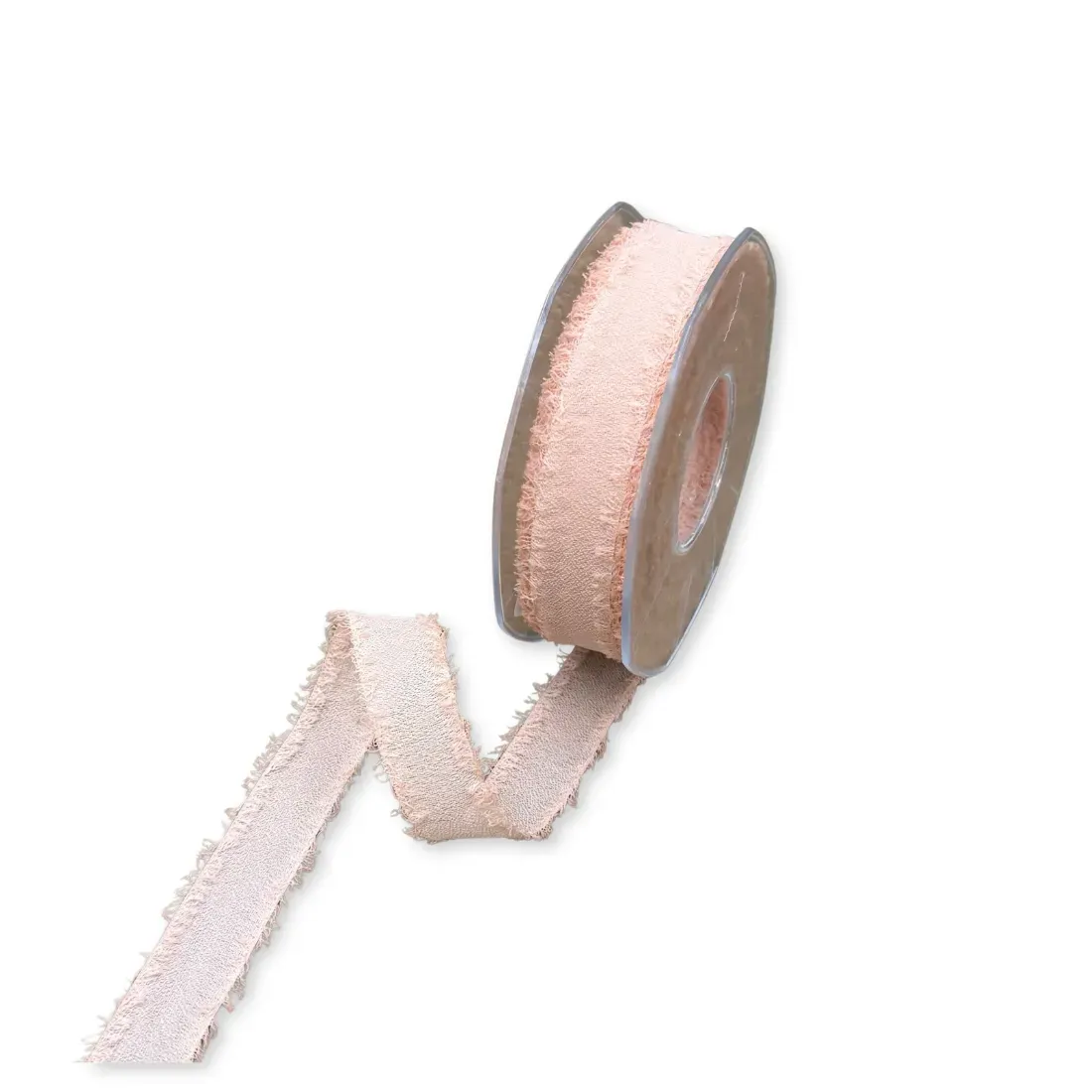 Nastro in tessuto in trama bouclé con bordatura sfrangiata.