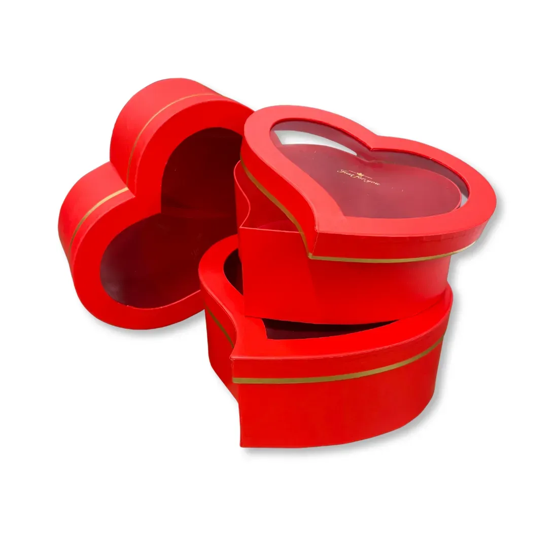Set di scatole con coperchio a forma di cuore con finestra trasparente e scritta "Just for You".