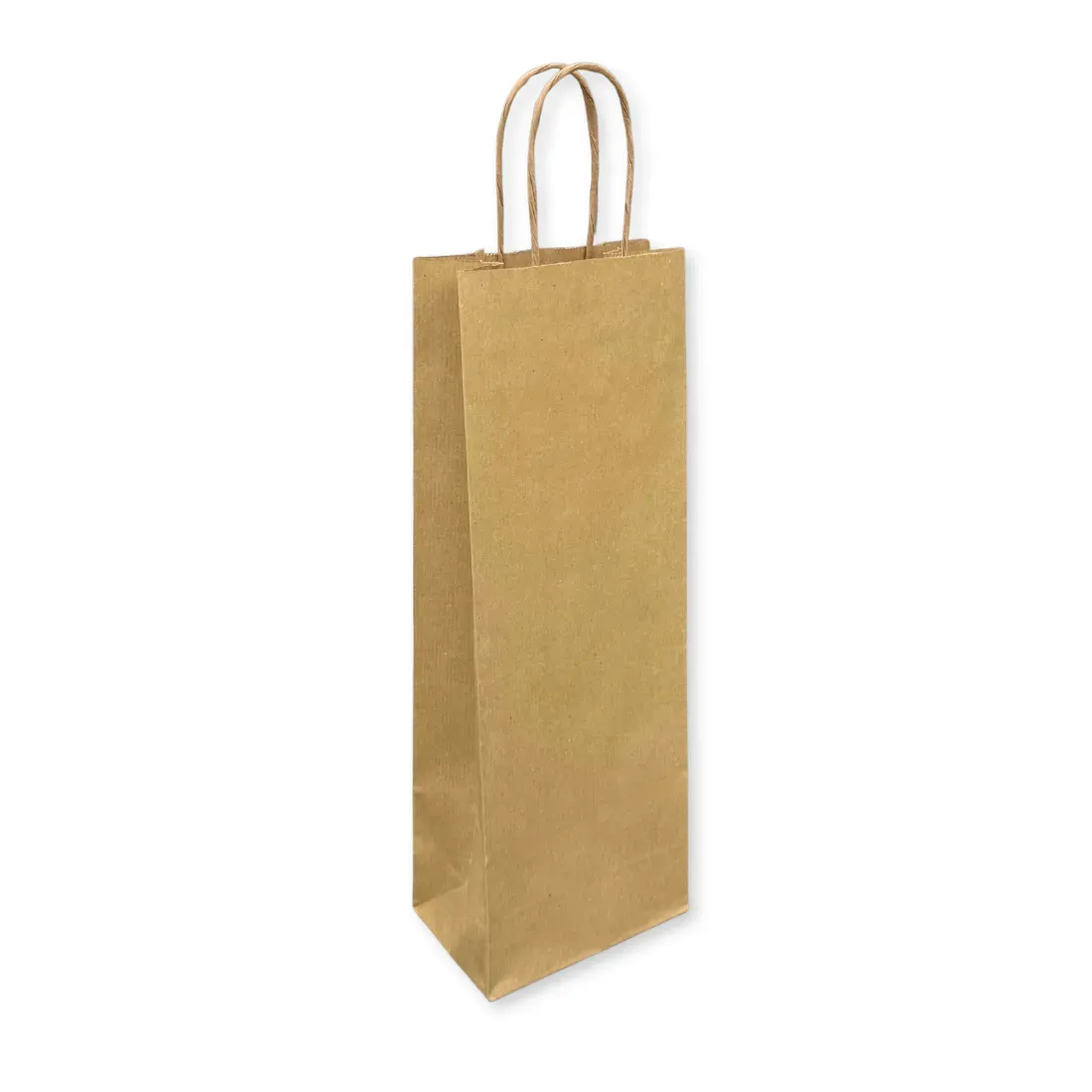 Shopper porta bottiglia in carta avana, linea economica, la carta rinforzata e la maniglia ritorta permettono un ottima tenuta di peso.